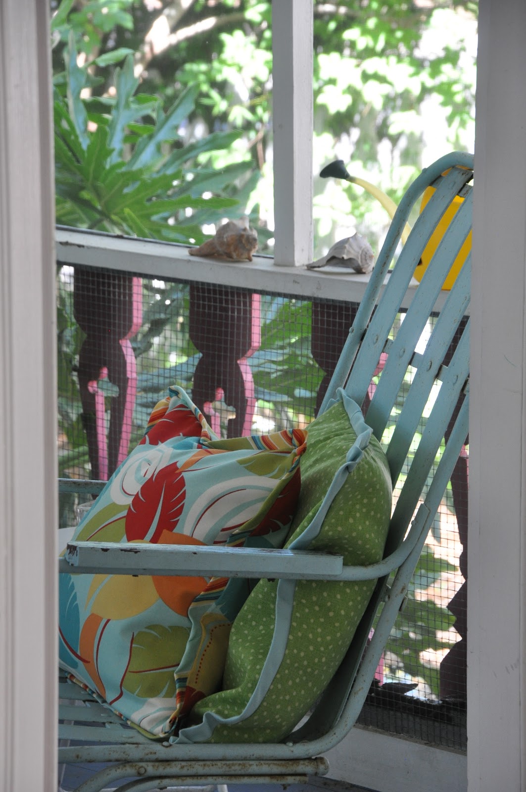 I designed the hanging bed from a photograph the owner had been saving for several years. The mattress, and throw pillows are covered in outdoor fabric to protect them. ...The magic spot for reading a good book or sleeping the afternoon away.