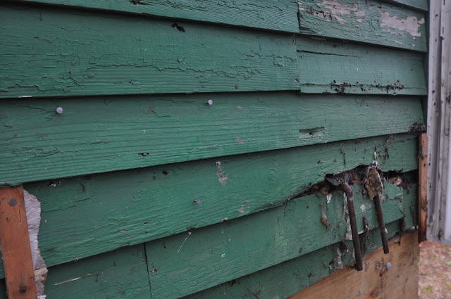 | original window on the front of the house was covered with vinyl siding ..It needs it to be a window once again and we need to lose the ugly storm door..... |