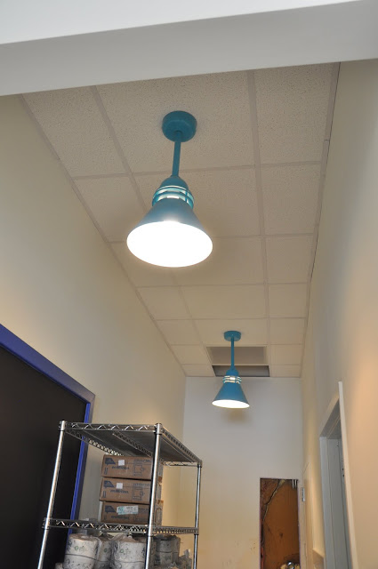 The client fell in love with 4 my colors and with the vct flooring that I use in many of my cottages. We did a cottage feeling mixed with the retro ice cream parlor lighting and furniture.We added tin awnings over  turquoise benches and old windows with cottage star fish and crab  shutters . It feels friendly and relaxing and the yogurt is absolutely Yummy!  I will take final photos to share with you once the retro swivel bar sools are on place at the counter.