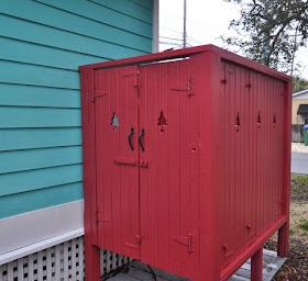 | add some old windows to a work shed and a porch and some happy colors and you have a "happy place" |